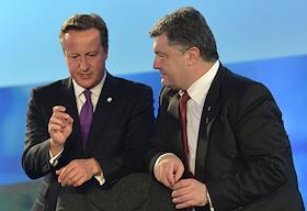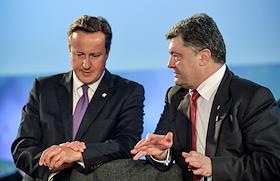 Премьер-министр Великобритании Дэвид Кэмерон (слева) и президент Украины Петр Порошенко (справа) во время саммита Североатлантического альянса (НАТО) в Уэльсе.