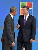 Президент США Барак Обама (слева) и премьер-министр Великобритании Дэвид Кэмерон (справа) во время саммита Североатлантического альянса (НАТО) в Уэльсе.