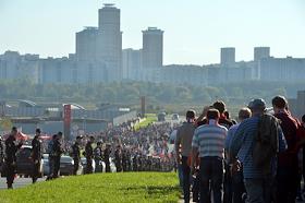 Лидер Коммунистической партии России Геннадий Зюганов (слева) на трибуне во время товарищеского матча по футболу между ФК "Спартак" (Россия, Москва) и ФК "Црвена Звезда" (Сербия, Белград) на стадионе "Открытие Арена".