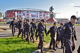 Сотрудники полиции перед началом товарищеского матча по футболу между ФК "Спартак" (Россия, Москва) и ФК "Црвена Звезда" (Сербия, Белград) на стадионе "Открытие Арена".