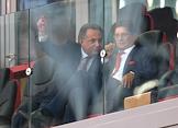 Президент ПФК ЦСКА Евгений Гинер (в центре) и руководитель администрации президента России Сергей Иванов (справа) на трибуне перед началом товарищеского матча по футболу между ФК "Спартак" (Россия, Москва) и ФК "Црвена Звезда" (Сербия, Белград) на стадионе "Открытие Арена".