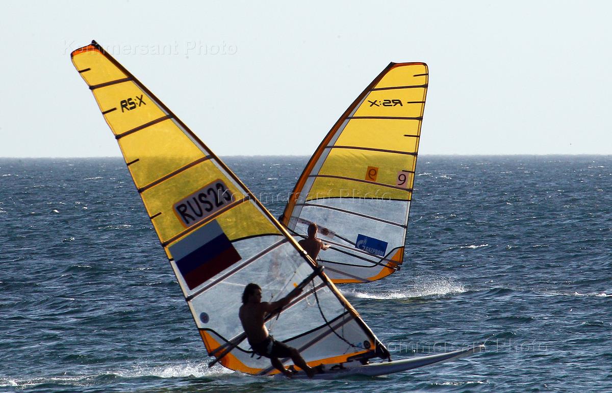 Жанровая фотография. Отдыхающие на серфинге в Черном море.