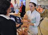 Церемония награждения лучших медицинских работников "День белого халата" прошла в Московском международном доме музыки. Мэр Москвы Сергей Собянин (слева) на медицинской выставке в фойе Московском международном доме музыки.