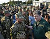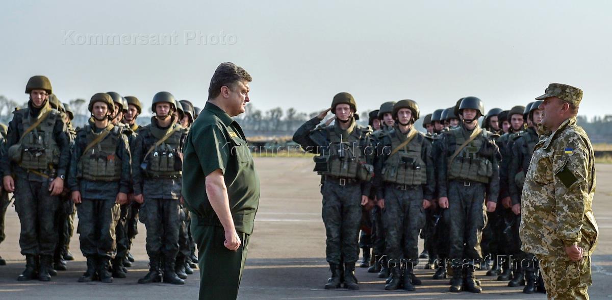Рабочая поездка президента Украины Петра Порошенко в Донецкую область. Президент Украины Петр Порошенко (справа) на церемонии награждения украинских военных в Мариуполе.