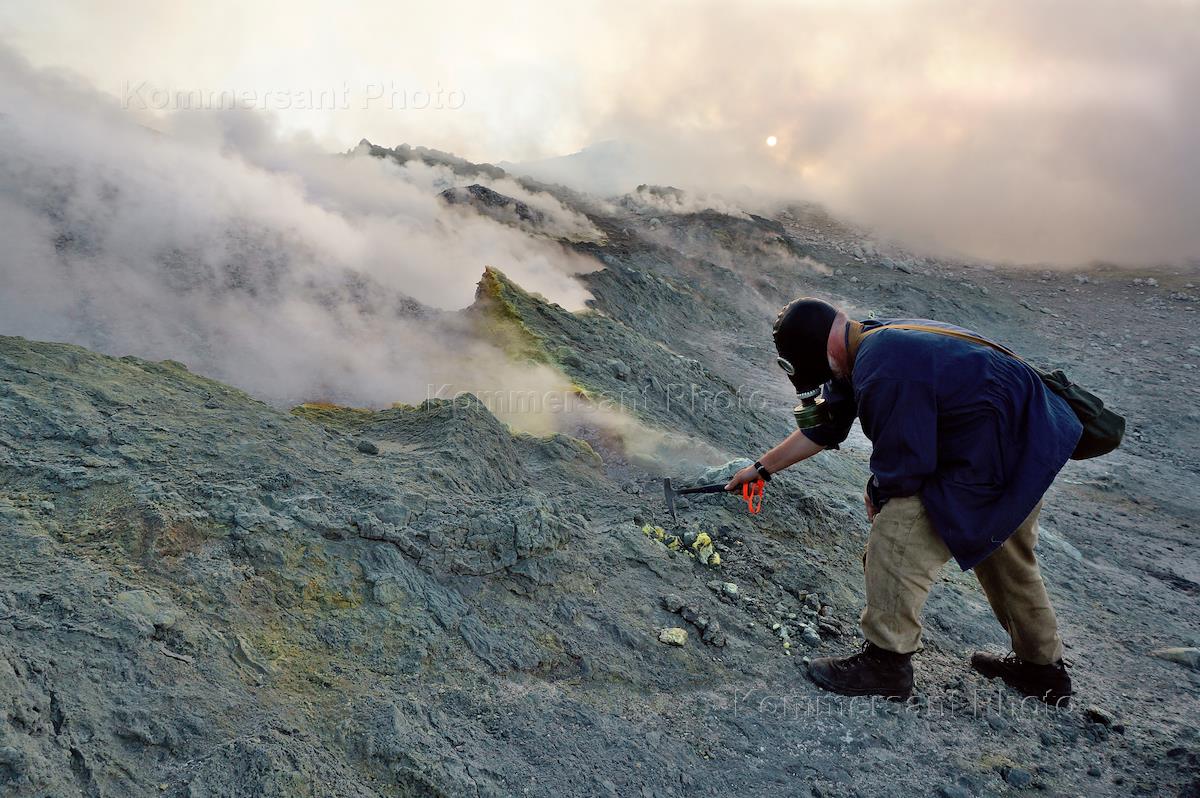 Iturup Island. Kurilsk. Kudryavy volcano. Fumarole (emission of hot volcanic gas).