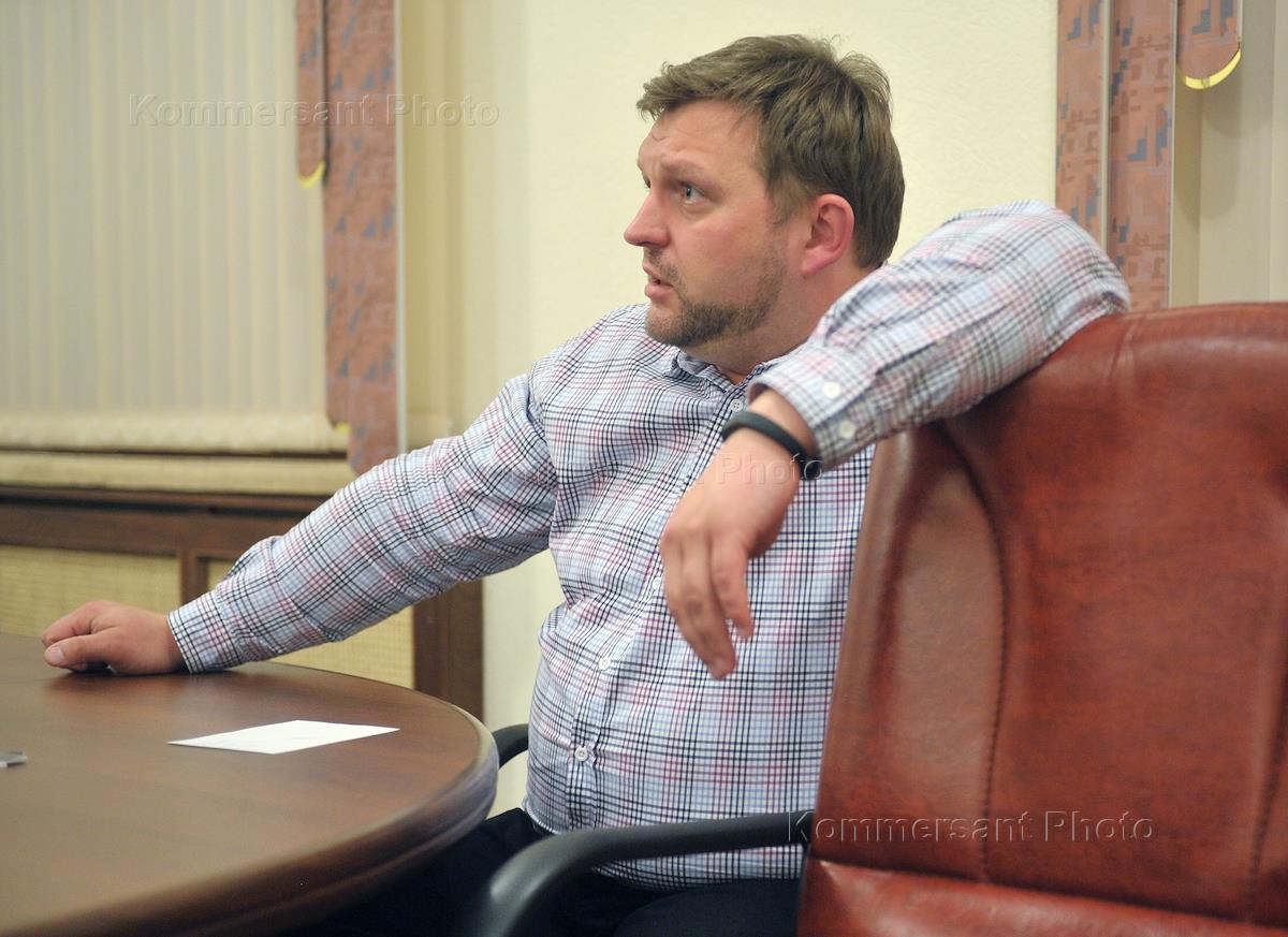 Выборы губернатора Кировской области пройдут в единый день голосования 14 сентября 2014. Предвыборная кампания в Кировской области. Член центрального совета партии "Справедливая Россия" Сергей Доронин во время интервью.