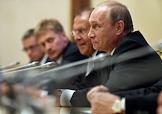 Рабочая поездка президента России Владимира Путина в Душанбе. Саммит Шанхайской организации сотрудничества (ШОС). Слева направо: министр иностранных дел России Сергей Лавров, президент России Владимир Путин и помощник президента России Юрий Ушаков на переговорах, которые прошли в рамках Саммита ШОС.