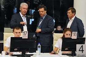 Единый день голосования. Выборы в Московскую городскую думу. Мэр Москвы Сергей Собянин во время знакомства с работой штаба Общественной палаты России во время выборов.