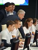 Единый день голосования. Выборы в Московскую городскую думу. Полномочный представитель правительства России в высших судебных инстанциях Михаил Барщевский (слева) и мэр Москвы Сергей Собянин (третий слева) во время знакомства с работой штаба Общественной палаты России во время проведения выборов.