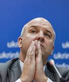 Комиссар Совета Европы по правам человека Нилс Муйжниекс во время пресс-конференции в информационном агентстве "Укринформ".