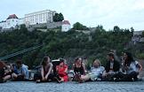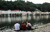 Жанровая фотография. Набережная Дуная. Молодые люди сидят на мостовой.