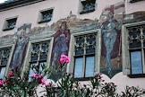 Жанровая фотография. Мозаика с изображением рыцарей на стене старинного дома.