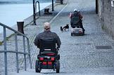 Жанровая фотография. Инвалиды на электрических колясках на набережной Дуная.