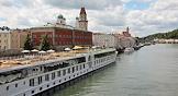 Жанровая фотография. Набережная Дуная. Вид города. Пассажирское судно у причала.