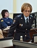 Новый начальник главного следственного управления Главного управления (ГУ) МВД по Москве Наталья Агафьева во время заседания в Главном управлении (ГУ) МВД России по Москве, на котором она была представлена руководству ГУ МВД России по г. Москве и личному составу Главного следственного управления московской полиции.