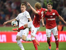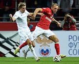 СОГАЗ-Чемпионат России по футболу 2014/15. 8-й тур. Матч между командами "Спартак" (Москва) и "Терек" (Грозный) прошел на стадионе "Открытие Арена". Футболисты Марцин Комаровски (в центре) и Денис Глушаков (слева) во время матча.