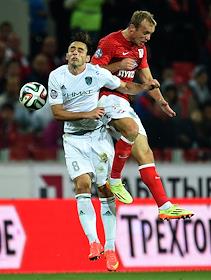 СОГАЗ-Чемпионат России по футболу 2014/15. 8-й тур. Матч между командами "Спартак" (Москва) и "Терек" (Грозный) прошел на стадионе "Открытие Арена". Футболисты Жозе Маурисио (слева) и Денис Глушаков (справа) во время матча.
