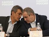 Губернатора Севастополя Сергей Меняйло (слева) и секретарь генерального совета партии "Единой Россия" Сергей Неверов (спрва) во время конференции севастопольской городской партийной организации "Единой России".