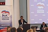 Секретарь генерального совета партии "Единой Россия" Сергей Неверов (слева) и глава Агентства по развитию Севастополя Алексей Чалый (справа) во время конференции севастопольской городской партийной организации "Единой России".