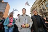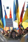 Акция "Марш мира" против военных действий на Украине, организованная партией РПР-Парнас. Участники акции прошли от Пушкинской площади до проспекта Сахарова. Лидер фракции "Яблоко" в Законодательном собрании Санкт-Петербурга Григорий Явлинский (в центре) и председатель Российской объединенной демократической партии "Яблоко" Сергей Митрохин (справа) во время акции.
