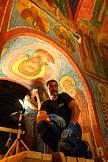 Художники-реставраторы в Успенском соборе Кирилло-Белозерского монастыря — мужского православного монастыря на берегу Сиверского озера.