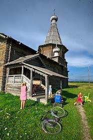 Памятники деревянного зодчества в окрестностях Каргополя. Сретенско-Михайловская церковь (1655 г.) в деревне Красная Ляга - самый старый памятник деревянного зодчества Каргополья.