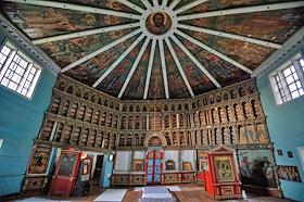 Памятники деревянного зодчества в окрестностях Каргополя. "Небеса" в церкви Иоанна Златоуста в селе Саунино (Кипрово). Оформление потолка хорактерное для храмов русского Севера.