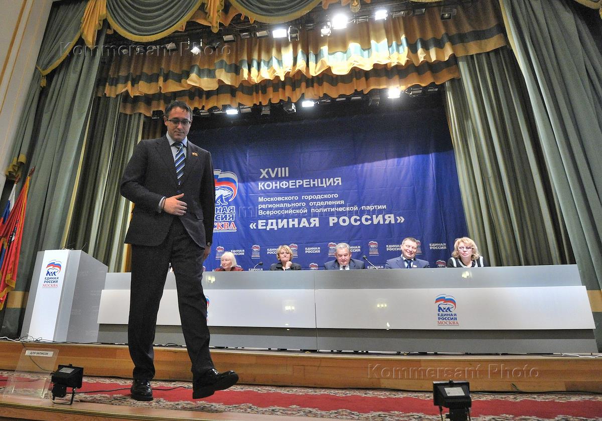Председатель Совета муниципальных образований города Москвы Алексей Шапошников на конференции Московского городского регионального отделения партии "Единая Россия" в Центральном Доме ученых РАН.