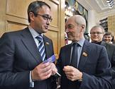 Председатель Совета муниципальных образований города Москвы Алексей Шапошников (слева) и председатель Московской городской думы Владимир Платонов (справа) на конференции Московского городского регионального отделения партии "Единая Россия" в Центральном Доме ученых РАН.
