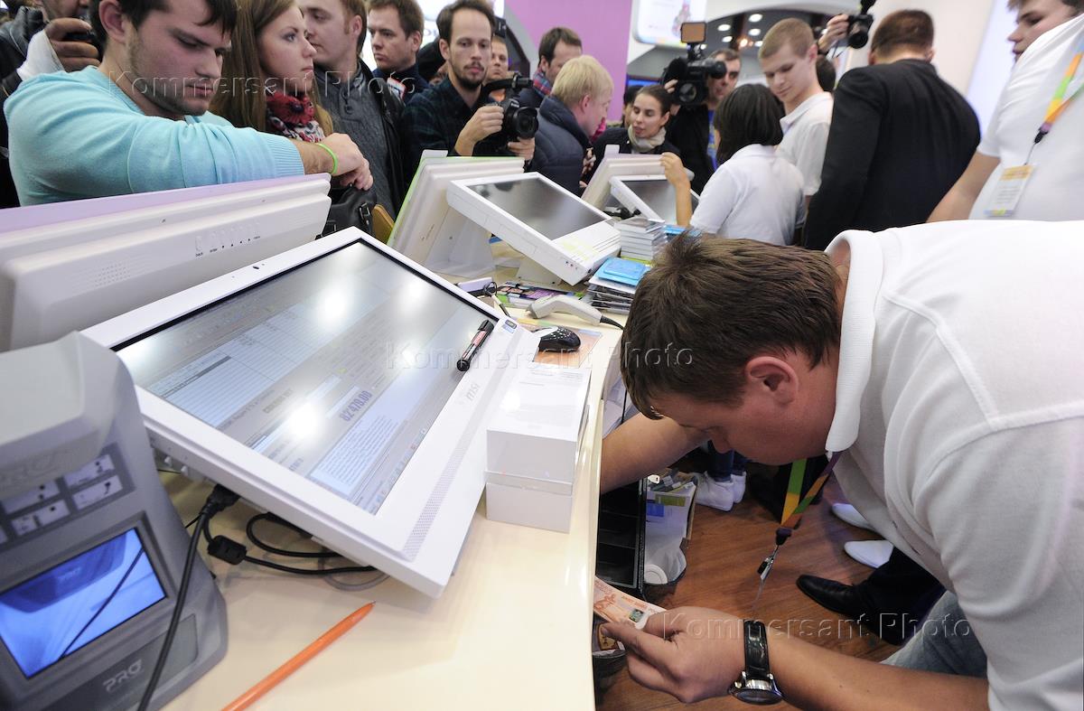 The start of IPhone 6 selling is in the flagship store called 'Svyaznoy'.
