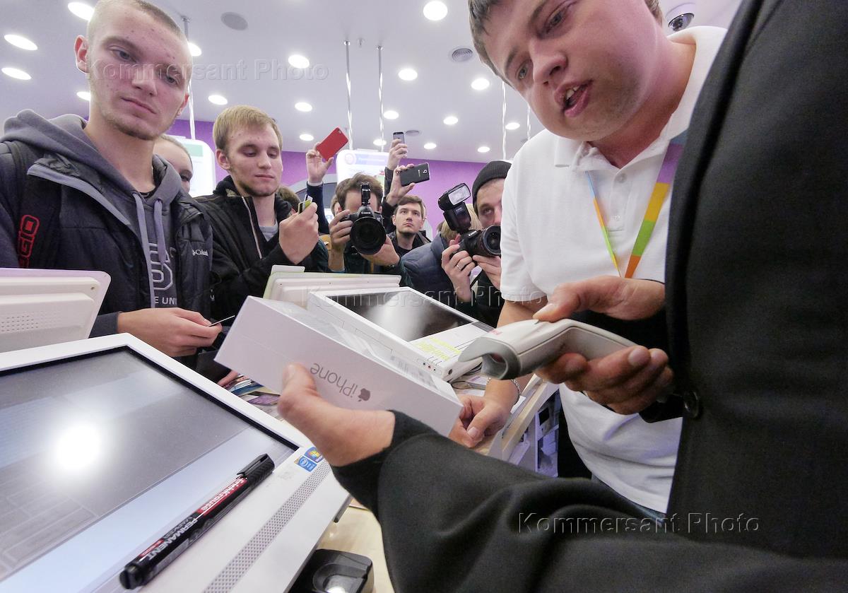 The start of IPhone 6 selling is in the flagship store called 'Svyaznoy'.