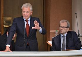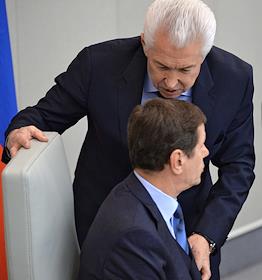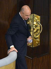 Председатель Коллегии Евразийской экономической комиссии Виктор Христенко (слева) и полномочный представитель президента России в Государственной думе России Гарри Минх (справа) на пленарном заседании Госдумы.