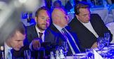 Торжественная церемония вручения третьей ежегодной премии за наиболее значимые достижения соотечетвенников "Сделано в России", организованная журналом "Сноб". Президент Союза биатлонистов России (СБР) Михаил Прохоров (слева), совладелец и старший партнер Garber Hannam Partners (GHP) Group Марк Гарбер (второй справа), генеральный директор телекомпании "Первый канал" Константин Эрнст (справа) в конгресс-парке гостиницы "Украина".