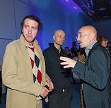 Торжественная церемония вручения третьей ежегодной премии за наиболее значимые достижения соотечетвенников "Сделано в России", организованная журналом "Сноб". Слева направо: режиссер Александр Шейн, режиссер, актер и драматург Иван Вырыпаев, художник-карикатурист Андрей Бильжо в конгресс-парке гостиницы "Украина".
