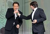 Торжественная церемония вручения третьей ежегодной премии за наиболее значимые достижения соотечетвенников "Сделано в России", организованная журналом "Сноб". Генеральный директор телекомпании "Первый канал" Константин Эрнст (слева) и президент компании "Живи" Николай Усков (справа) в конгресс-парке гостиницы "Украина".