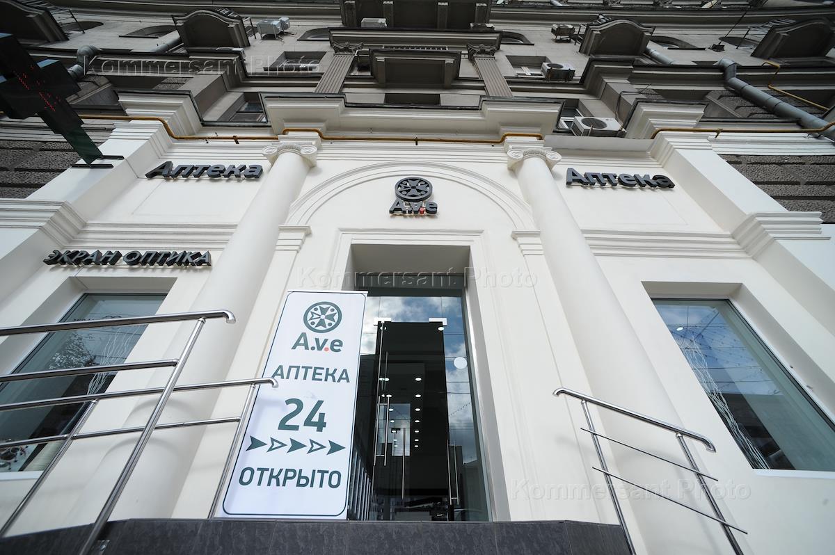 Виды Москвы. Аптека сети "A.v.e." в здании на Кутузовском проспекте.