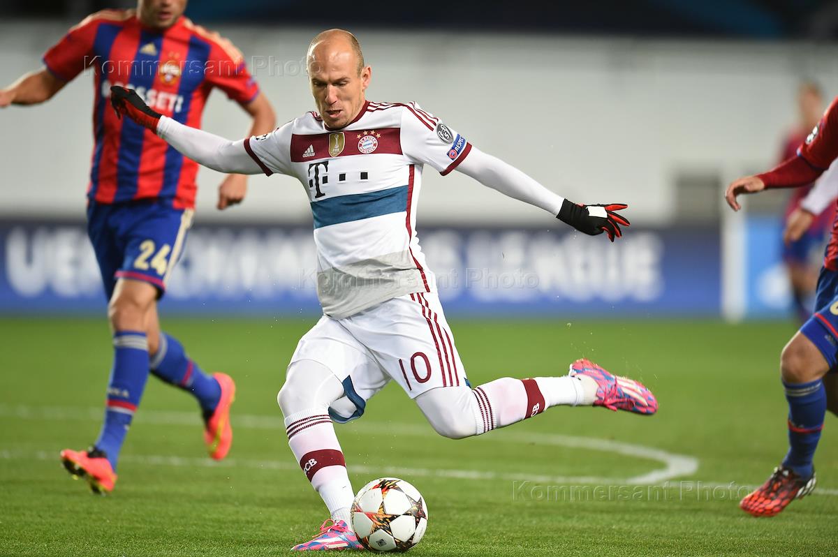 Лига чемпионов УЕФА по футболу. Матч между командами ЦСКА (Россия, Москва) – "Бавария" (Германия, Мюнхен) прошел на стадионе "Арена Химки". Футболист Арьен Роббен во время матча.