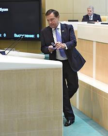 Представитель в Совете федерации России от законодательного (представительного) органа государственной власти Ульяновской области Сергей Рябухин на пленарном заседании Совета федерации России.