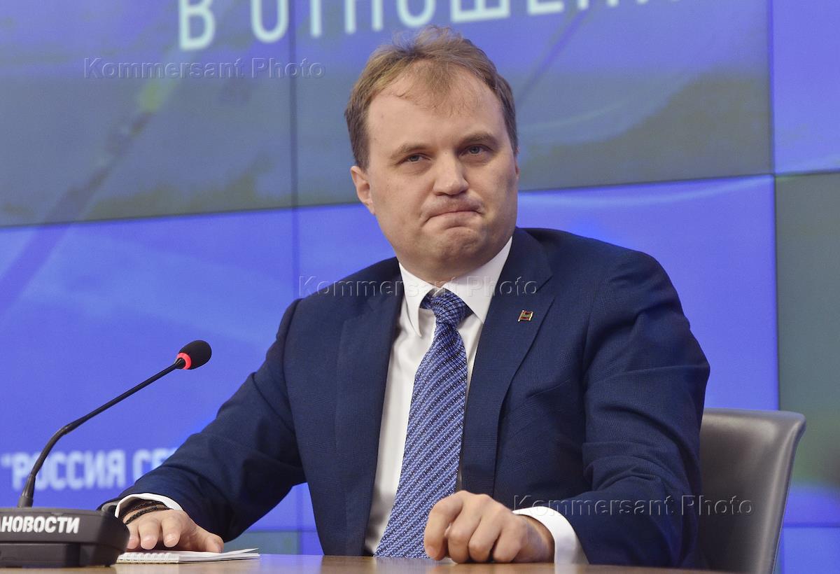 Президент непризнанной Приднестровской Молдавской Республики Евгений Шевчук во время по вопросам блокадных действий в отношении республики. Брифинг прошел в МИА "Россия сегодня".