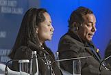 Шестой ежегодный Инвестиционный форум ВТБ Капитал "Россия зовет!" в ЦМТ. День второй. Главный исполнительный директор Huawei Technologies Ваньчжоу Мэн (слева) на форуме.