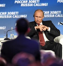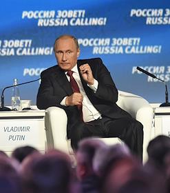 Шестой ежегодный Инвестиционный форум ВТБ Капитал "Россия зовет!". Президент России Владимир Путин на заседании форума в Центре международной торговли (ЦМТ).