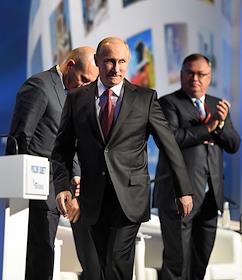 Шестой ежегодный Инвестиционный форум ВТБ Капитал "Россия зовет!". Президент России Владимир Путин (второй справа) на заседании форума в Центре международной торговли (ЦМТ).