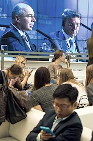 Шестой ежегодный Инвестиционный форум ВТБ Капитал "Россия зовет!" в ЦМТ. День второй. Главный исполнительный директор Huawei Technologies Ваньчжоу Мэн на форуме.