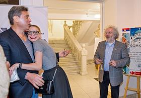 Традиционный ежегодный прием по поводу дня рождения радиостанции "Эхо Москвы". Уполномоченный по правам ребенка в Москве Евгений Бунимович (слева) и скульптор Георгий Франгулян (справа) на приеме в ресторане "Галерея Художника".