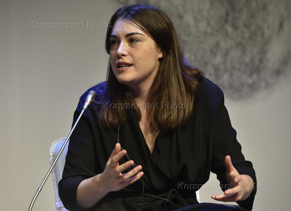 Глава "Госкино" Екатерина Мцитуридзе (слева) и режиссер Александр Сокуров (в центре) на Санкт-Петербургском Международном Медиа-Форуме (СПММФ/SPIMF).
