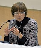 Первый заместитель председателя Центрального банка России Ксения Юдаева во время парламентских слушаний "О прогнозе социально-экономического развития РФ до 2017 года и параметрах проекта федерального бюджета на 2015 год и на плановый период 2016 и 2017 годов". Слушания прошли в зале пленарных заседаний Совета Федерации России.