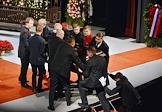 Церемония прощания с режиссером Юрием Любимовым прошла в Государственном академическом театре имени Евг.Вахтангова. Директор Государственном академическом театре имени Евг.Вахтангова Кирилл Крок (слева) и актриса Людмила Максакова (вторая слева) во время церемонии прощания.