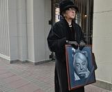 Церемония прощания с режиссером Юрием Любимовым прошла в Государственном академическом театре имени Евг.Вахтангова. Актер Сергей Юрский (слева), сын Юрия Любимова Петр (второй слева) и вдова Юрия Любимова Каталин (в центре) во время церемонии прощания.