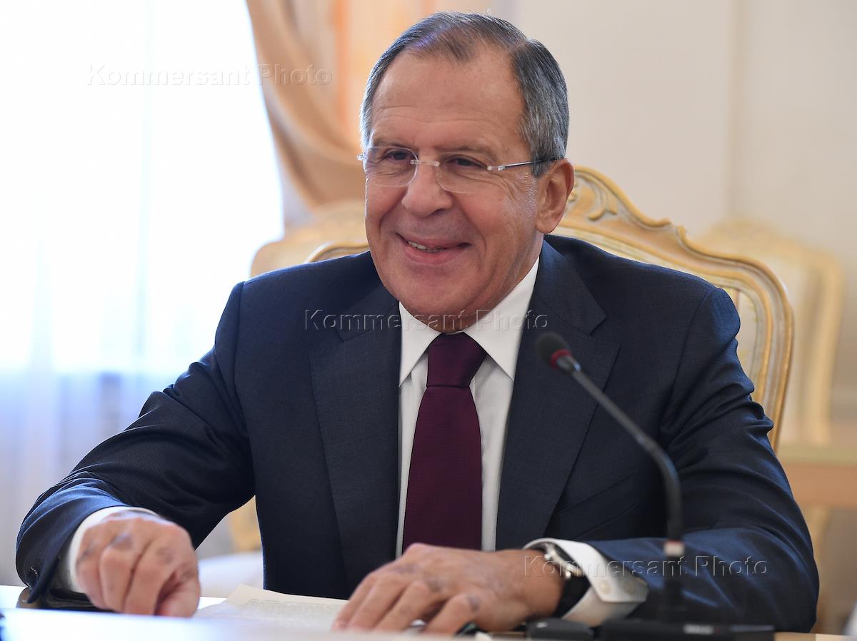 Министр иностранных дел России Сергей Лавров на переговорах с главой МИДа Венесуэллы Рафаэлем Рамиресом в особняке МИДа.