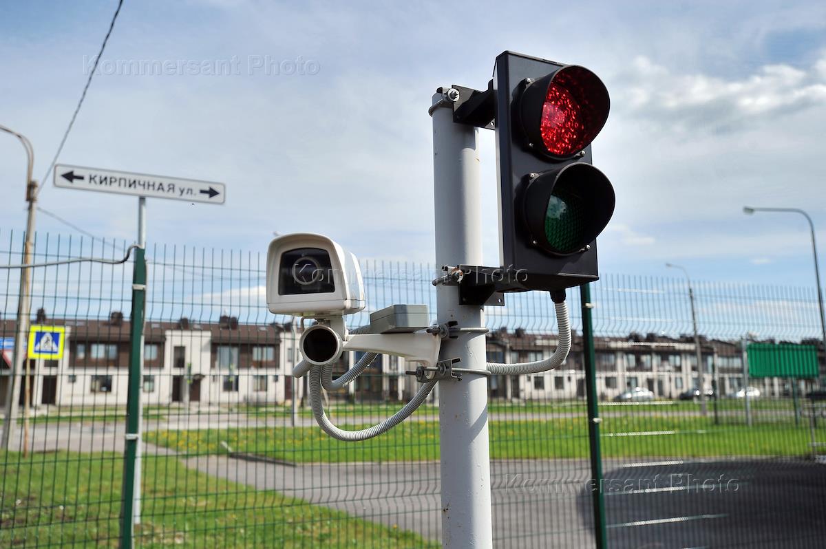 Жанровая фотография. Светофор и камера наружного набюдения на выезде Шушарского таможенного поста в особой экономической зоне технико-внедренческого типа "Нойдорф".